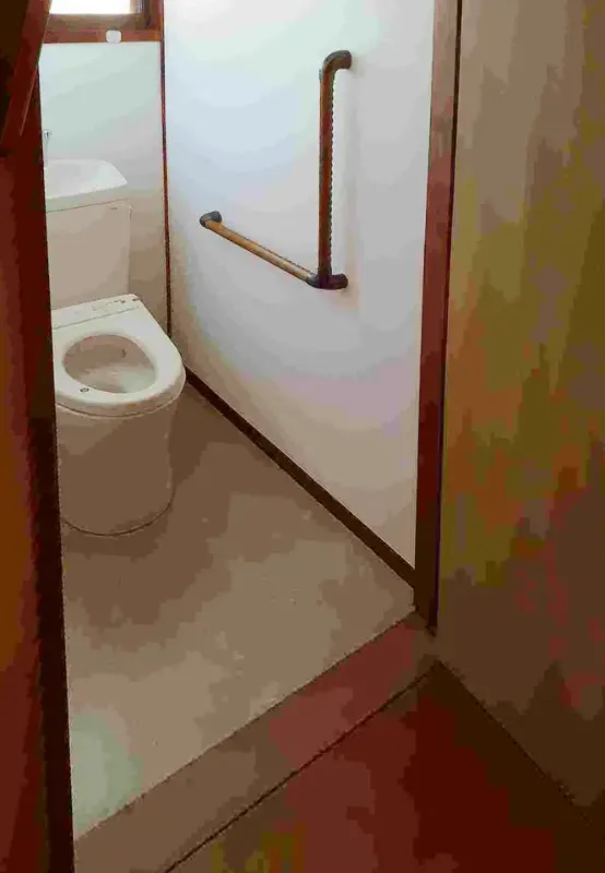 - 工事内容としては、玄関前の段差解消工事、便所の扉開口拡張及び便器交換と内装、寝室のフローリング工事。