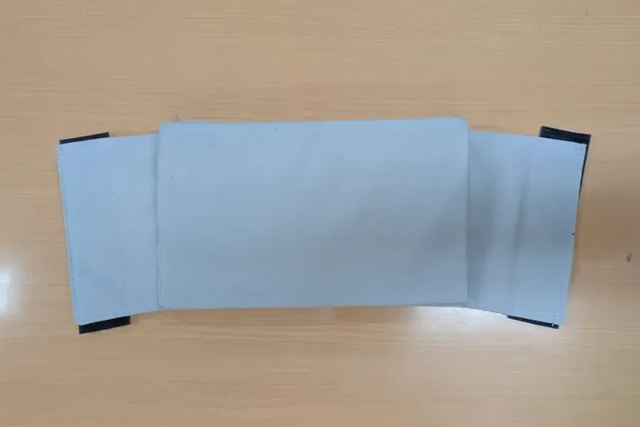 工夫した点としては、位置を調整できるようマジックベルトで貼り付けられるようにし、表面素材も滑り止め効果のある素材にしました。