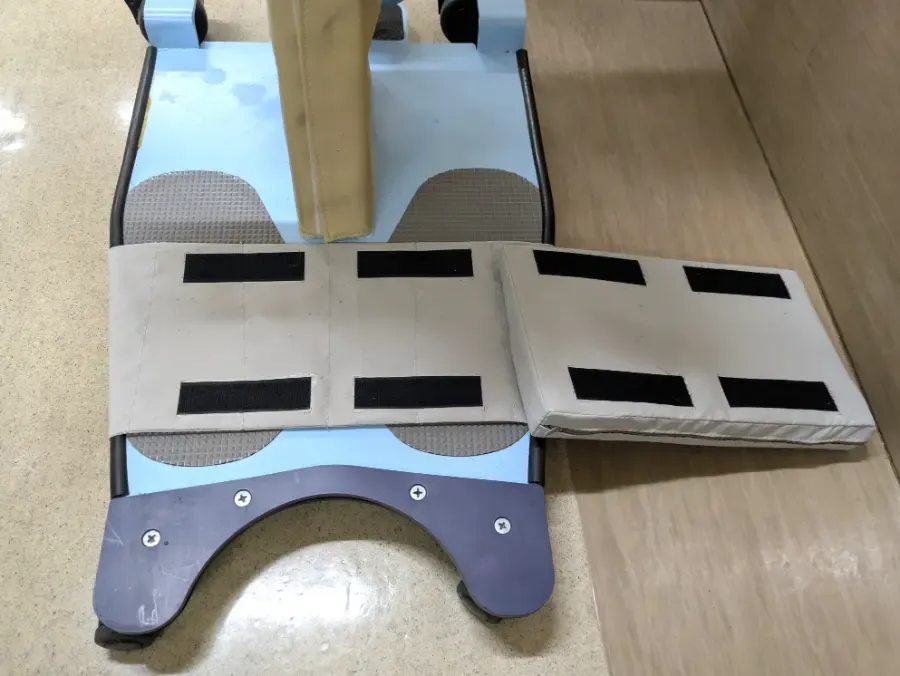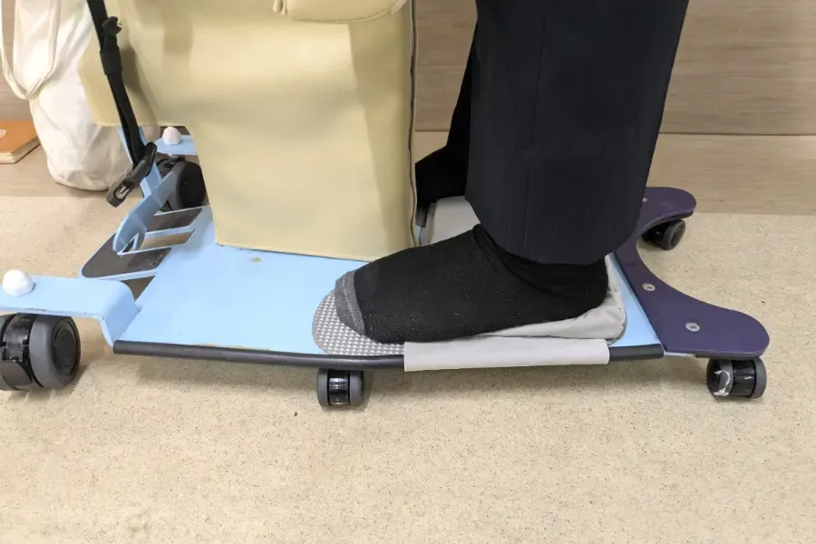 簡易型移乗リフト「ささえ手」を利用している障害者支援施設より、ご利用者のハムストリングスが固く、ささえ手での持ち上げ時に足が後方へ逃げてしまうためうまく使うことができないと相談がありました。