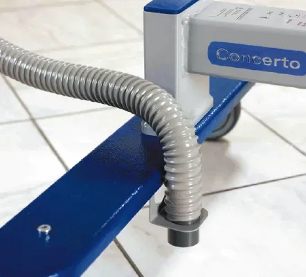 排水ホース(標準装備):ホースを使えば排水口に直接排水でき、水が飛び散りません。排水ホースは取り外して個別に洗浄可能です。ホースの外観はジャバラ状ですが、内部にはくぼみが無く、汚れが残りにくい形状です。