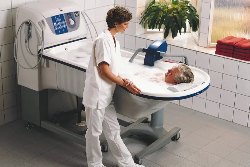 付属の専用ホースで入浴者の肩、肘や膝等の局部に直接ジェット水流を当てることができ、緩和ケアにもご使用いただけます。​​​​​​
