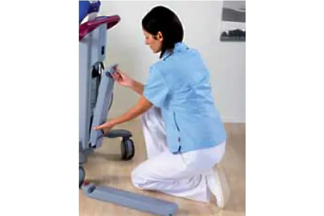 介助者は腰をかがめずに作業でき、腰痛対策、労務環境改善に効果的です。バッテリーの残量が少なくなると、ブザー音で知らせます。