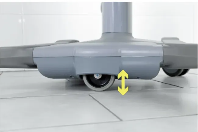 ボタンを押すと、本体下部からシリンダーが出て、本体を動かないようにします。