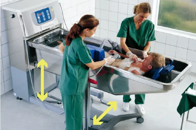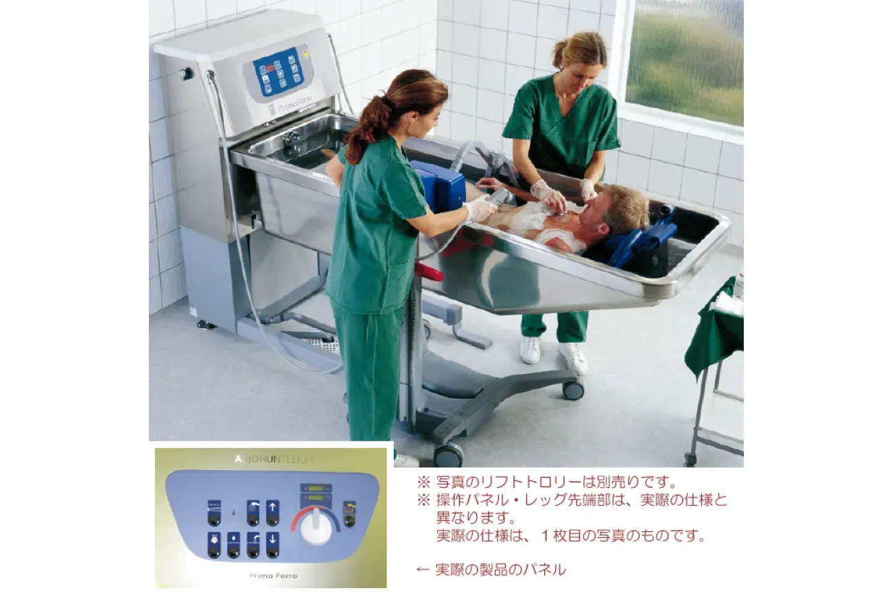 ステンレス製浴槽で衛生管理・保守に優れ、熱傷や皮膚疾患療養環境にも最適。