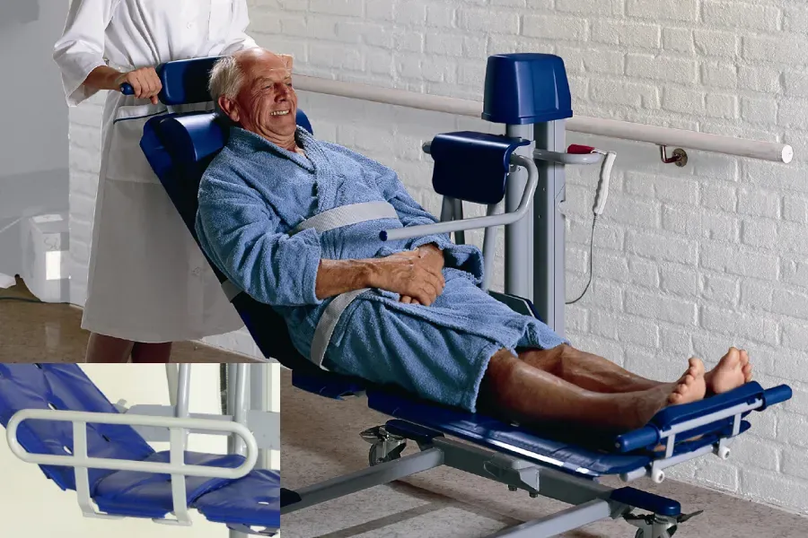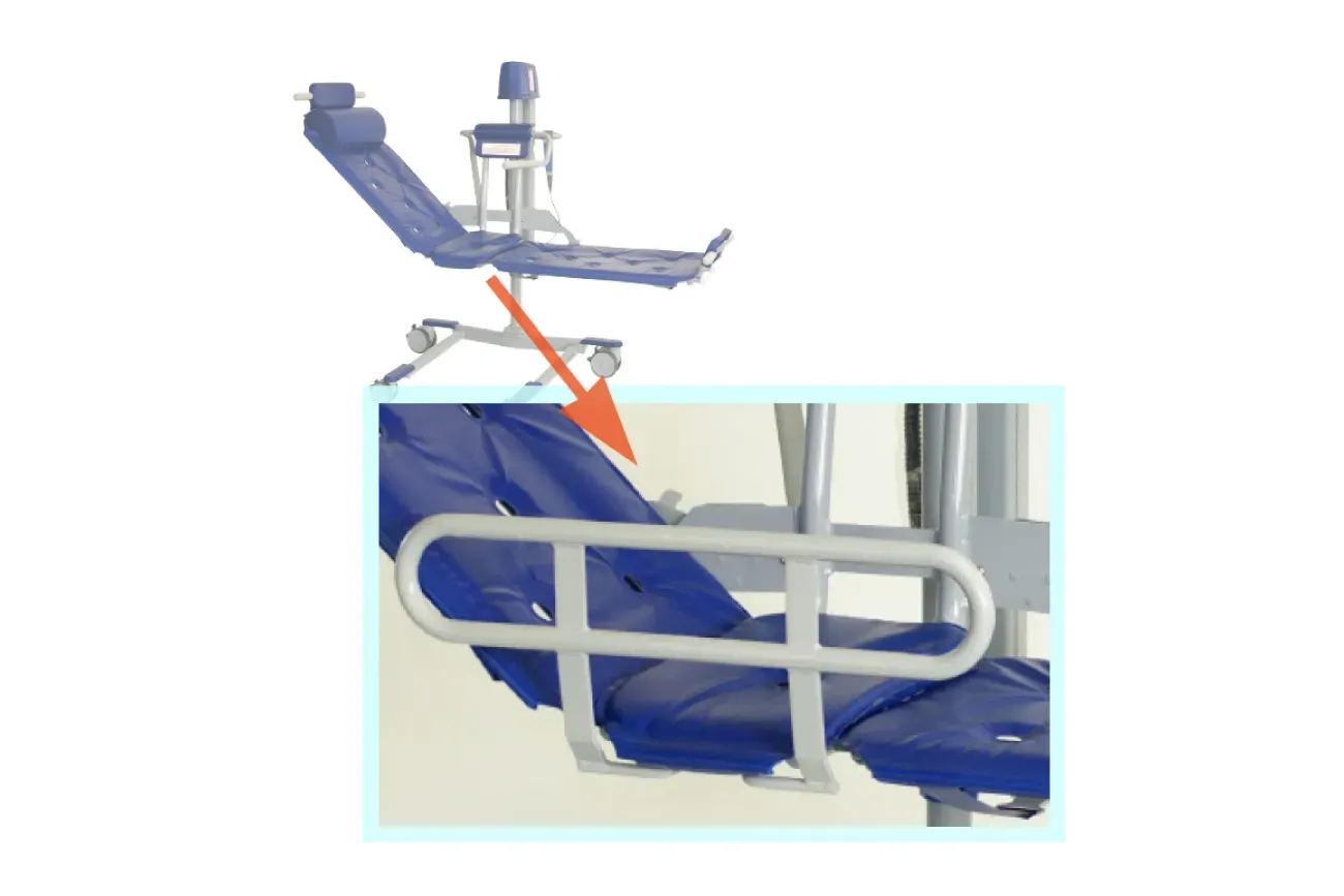 - 2 本の安全ベルトとサイドサポートが利用者の転落を予防します。