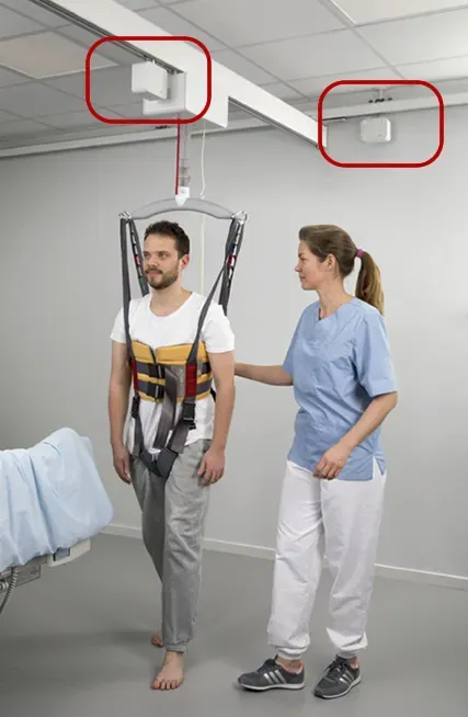 天井レールと合わせることにより広範囲の移動が可能になります。