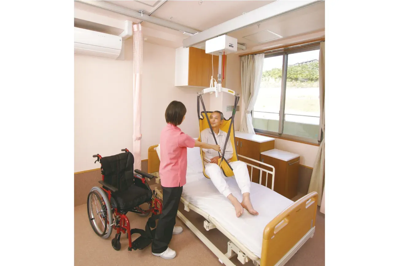 支柱などが無いため、介助スペースを広く、有効に活用できます。訓練やケアにも活用が広がっています。