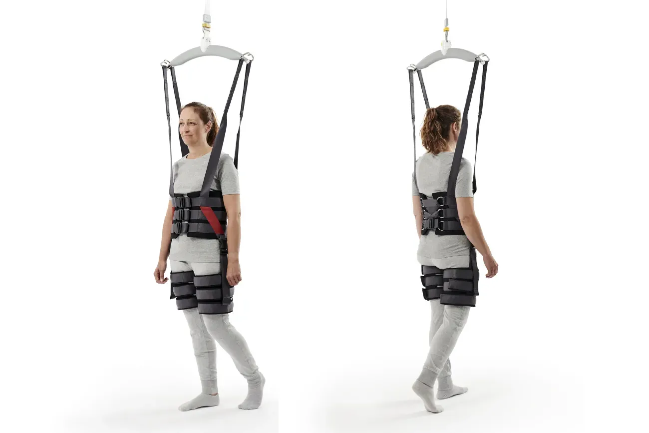 利用者/患者とセラピストの安全を守り、効果的なリハビリ、トレーニングに役立つ、立位補助・歩行・トレーニング用吊り具です。