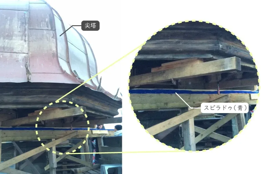下の写真例では、古城の尖塔部分の最終配置の際に位置の微調整を行うために利用されました。