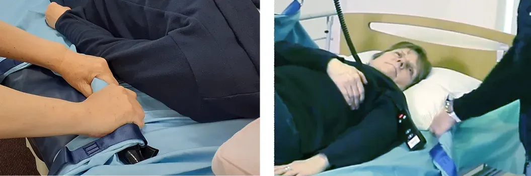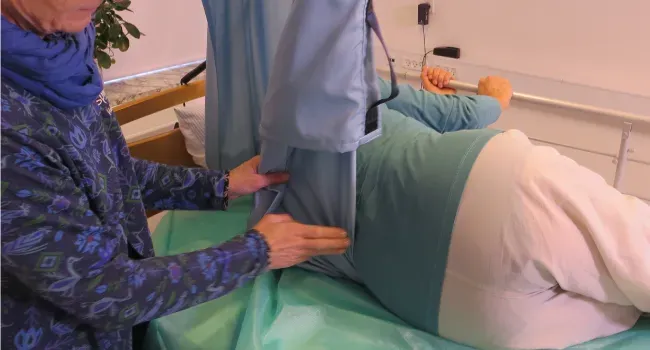 スピラプラス・ショートを使用した、仰臥位から側臥位へ体位変換、寝返りの補助
