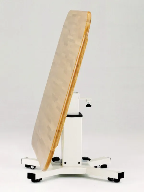 - 天板の高さを任意に調節できる昇降式テーブル。使用者に合わせてテーブルの高さをペダルで上下できます。昇降ペダルは、操作しやすいように両側にあります。