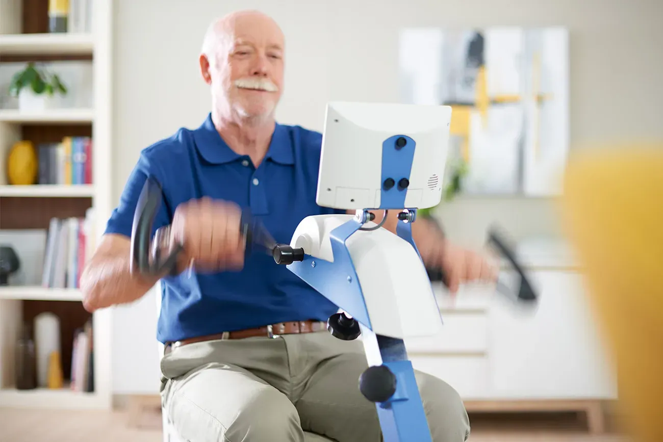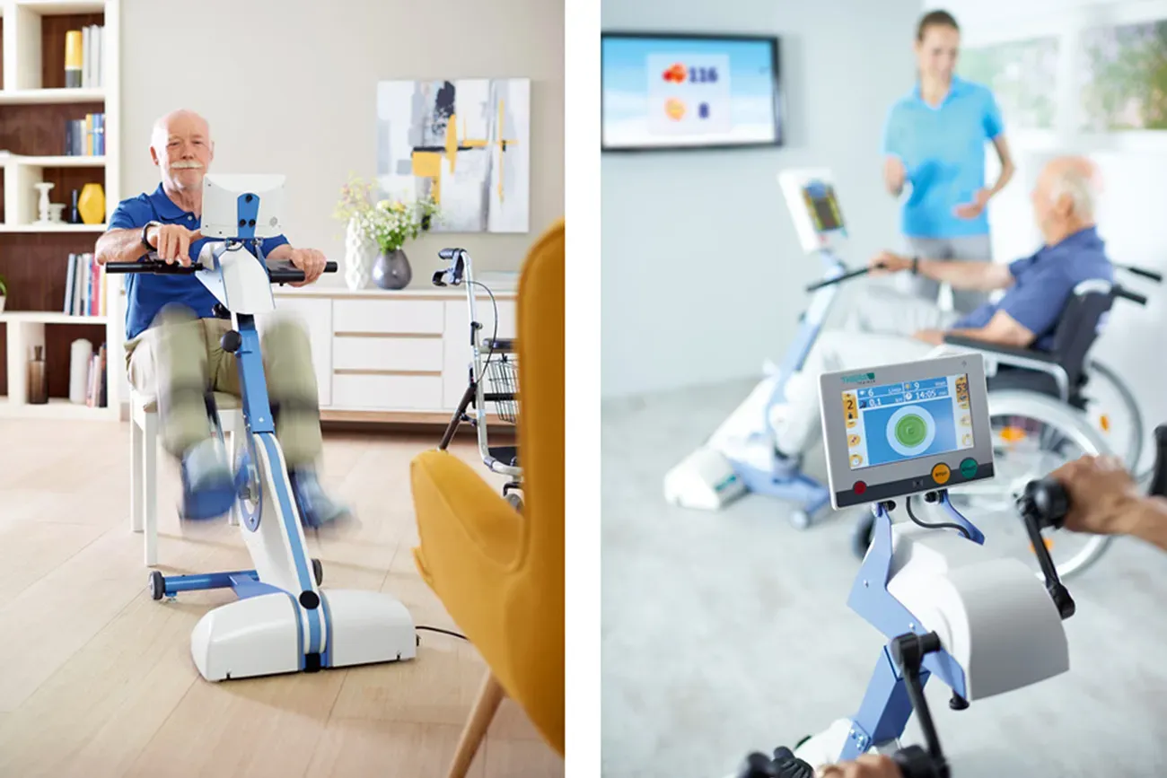 ドイツ メディカ社のリハビリ用トレーニング機器。ペダル回転で、足・股関節・ひざ関節を動かして運動機能を高めます。