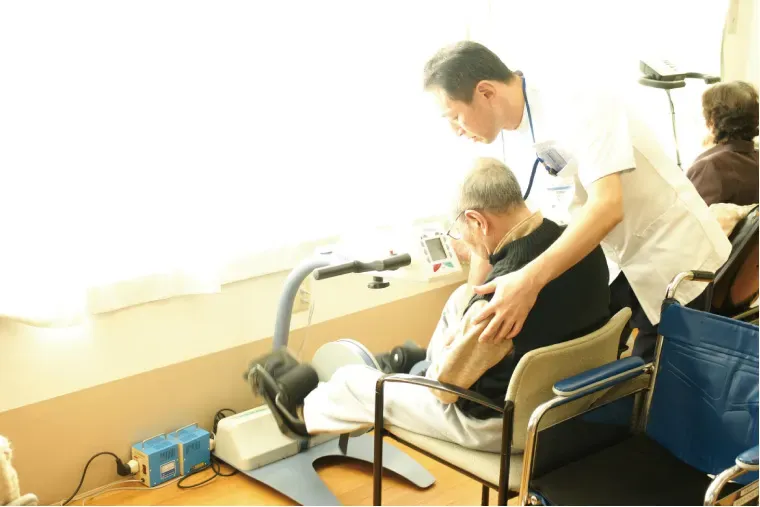 セラバイタルは車いすのまま、または、肘置きのある椅子に座り運動するのですが、運動中に意識障害が生じたとしても転倒事故の可能性は低く、少しでも転倒リスクのある方はセラバイタルを適用しています。
