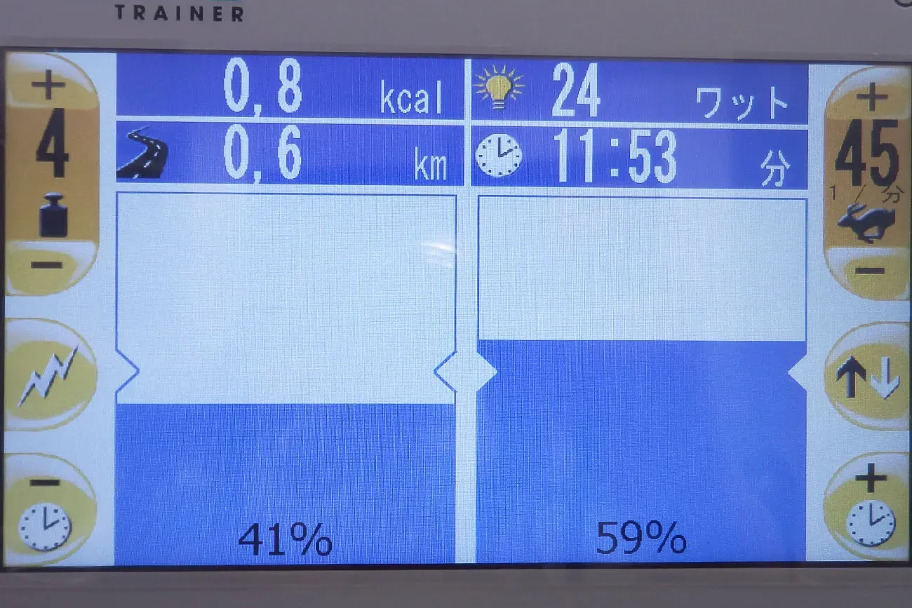 抵抗運動時、左右の脚力の比率がディスプレイに表示されます。