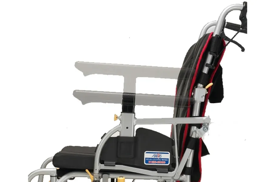 厚みに合わせ、アームサポートの高さを調節できるので、クッションの選定も自在です。 - 調節機能で座位姿勢を保持