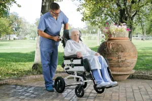 介助が必要な方の移動用車いす。 シンプルな調節機能付きのセミモジュール車いすです。 |