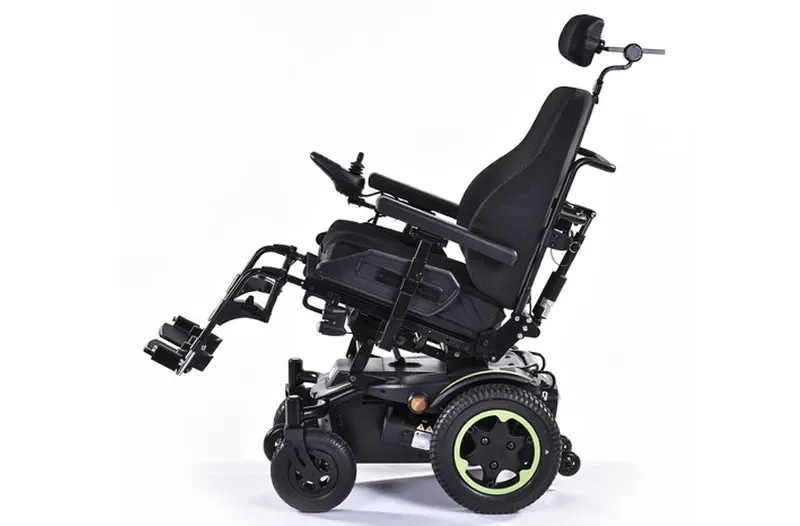 ティルト角度 0°~22° の電動ティルトシステムを搭載できます。Q200Rは全幅580mmと市場で最小の後輪駆動電動ティルト式電動車いすになります。