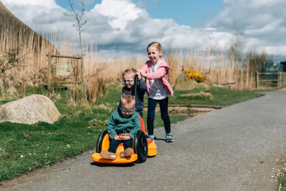 スクートで得られる体験からはたくさんのことが学ぶことができ、発育期に大切な要素である「遊び」のお手伝いをします。