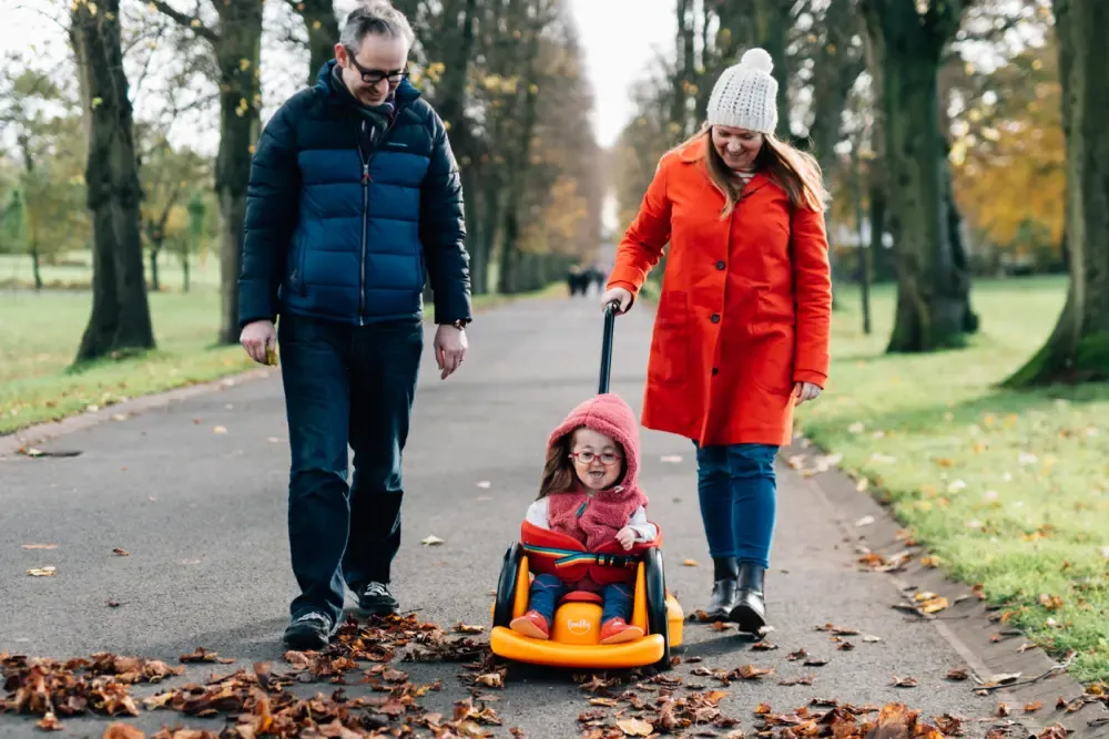 プーシュモードでは、家の中や、屋外で大人がお子さまを押すことができます。