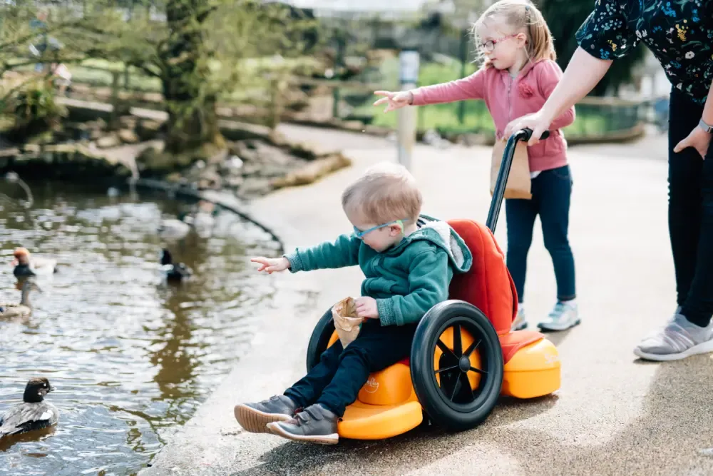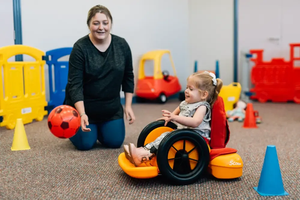 スクートを使えば、お身体の不自由なお子様も自分の身体能力や認識能力に合った方法で、遊んだり、動き回ったり、遊びの輪に参加していただけます。
