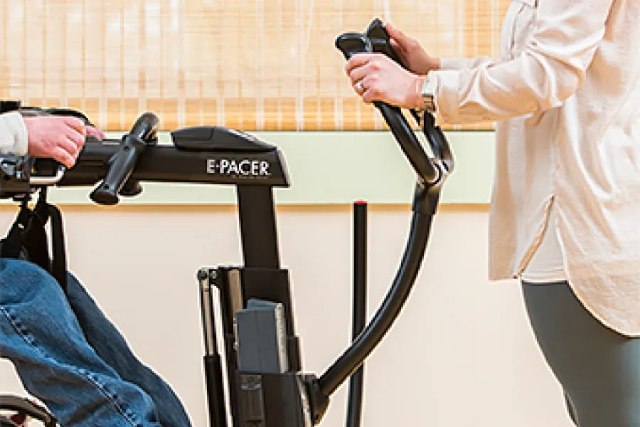 歩行器 ペーサーに電動昇降機能を追加した免荷表示装置付歩行訓練車。