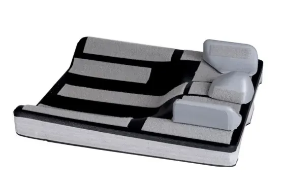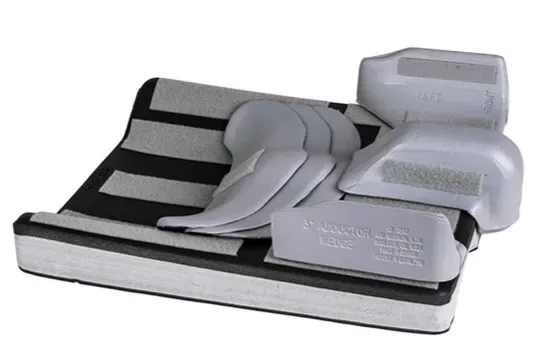 オプションを利用し、パッドの左右のバランスを変更したり、底上げ部品を使用することで、骨盤の片側への傾きを戻して側彎予防や防止、内・外転防止パッド(ウェッジ)を追加することで二次障害のウインドスエプト変形などを防止し、正しい肢位を確立することも可能です。