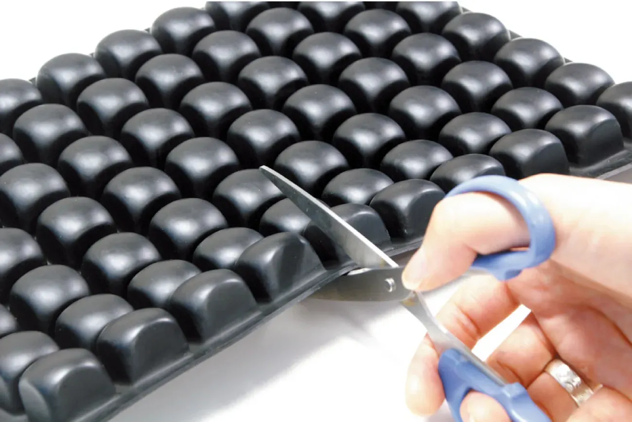 エアセル(空気の袋)が自由に動くことにより、摩擦やずれを最小限に抑えます。ハサミやカッターなどで、お好みの大きさに切り離せます。